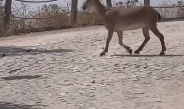 Elazığ'da koruma altındaki dağ keçileri tarihi Harput Mahallesi'nde yiyecek ararken görüntülendi.