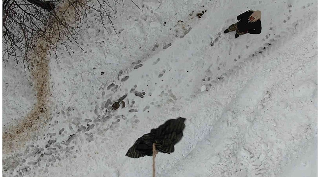 Elazığ'da tipi nedeniyle yolu kapanan mezrada yaşayan ve ilacı biten hastanın imdadına jandarma koştu. Kapanan noktaya kadar araç ile gidebilen ekipler, ilaç dolu poşeti drone ile hastaya ulaştırdı.