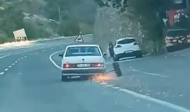 Elazığ'da seyir haliyken tekeri çıkan Tofaş Şahin otomobil kıvılcımlar saçarak ilerledi. O anlar cep telefonu kamerasına yansıdı.