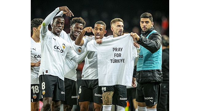 Milli futbolcu Cenk Özkacar'ın da formasını giydiği İspanyol ekibi Valencia'da futbolcular, Athletic Bilbao ile oynadığı karşılaşmada attıkları gol sonrası üzerinde 'Türkiye için dua et' yazılı tişörtü göstererek, depremzedeleri andı.