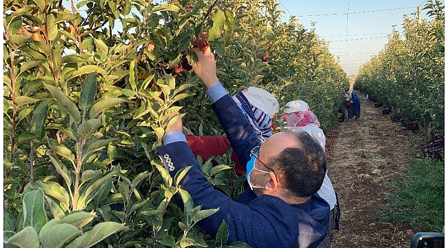 Elazığ Valisi Erkaya Yırık, bölgenin en büyük modern elma bahçesini ziyaret ederek işçilerle birlikte hasat yaptı.