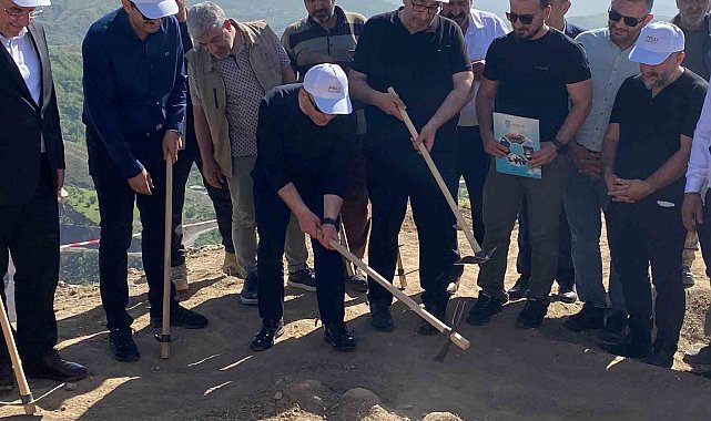 Elazığ Valisi Numan Hatipoğlu 2025 yılı kazı çalışmaları çerçevesinde, 3 bin yıllık geçmişe sahip, tarihi Palu Kalesi için ilk kazmayı vurdu.