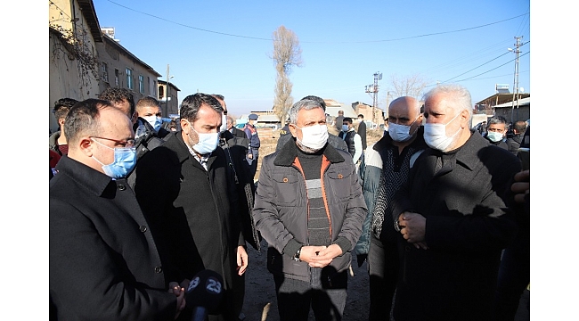 Elazığ'da meydana gelen 5.3 büyüklüğündeki deprem sonrası il protokolü depremin merkez üssü Kavaktepe köyünde incelemelerde bulundu.