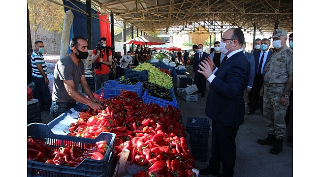 İçişleri Bakanlığının yayımladığı genelgeyle birlikte tüm ülkede olduğu gibi Elazığ'da da korona virüs denetimleri devam ediyor. Bu kapsamda denetimlere katılan Vali Erkaya Yırık, pazar yerinde esnaf ve vatandaşları Covid-19'a karşı uyardı. Vatandaşlarla sohbet eden Vali Yırık, aynı zamanda istek ve talepleri de dinledi.