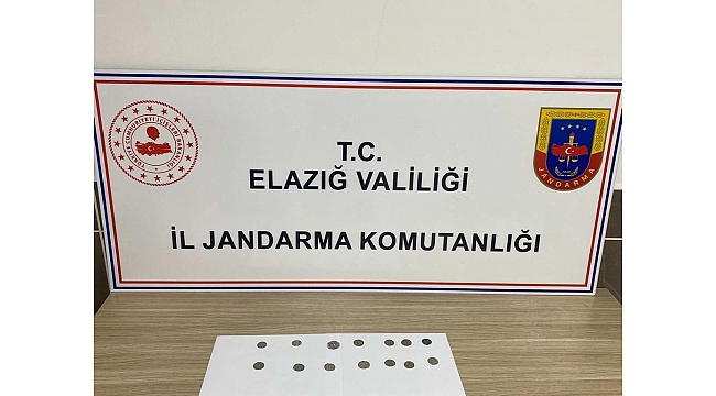 Elazığ İl Jandarma Komutanlığı ekiplerince gerçekleştirilen ve narkotik köpek 'Vasıf'ın da katıldığı operasyonda 14 adet tarihi eser niteliğinde olduğu değerlendirilen sikke ele geçirildi.