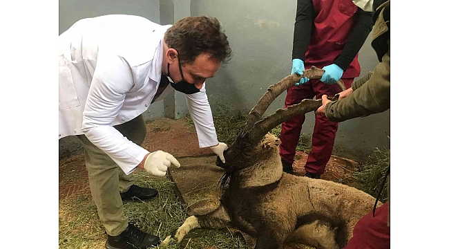 Elazığ'ın Karakoçan ilçesinde yaralı halde bulunan dağ keçisi, Fırat Üniversitesi Hayvan Hastanesinde tedavi altına alındı.