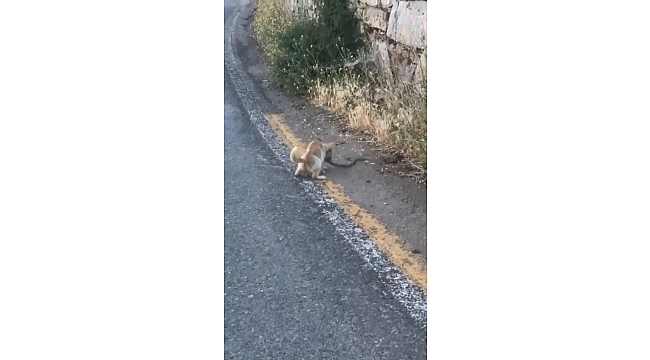 Elazığ'ın Arıcak ilçesinde kedi, yolun kenarında otlar arasında bir yılan olduğunu fark etti. Hemen atağa geçen kedi, yılana dişi ve patileri ile saldırmaya başladı. Kediye yem olmak istemeyen yılanın çabaları sonuç vermedi. Direnemeyen yılan kediye yem olmaktan kaçamadı. O anlar çevrede bulunan bir vatandaşın cep telefonu kamerasına yansıdı.