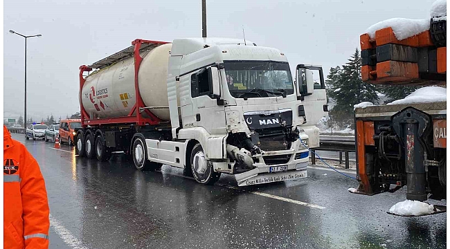TEM Otoyolu Kocaeli geçişinde bir araçtan yola dökülen yağ sebebiyle kayan kamyona tanker çarptı. Yaralanan kamyon sürücüsü hastaneye kaldırıldı.