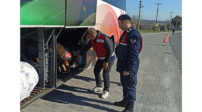 Aydın'ın Kuyucak ilçesinde jandarma tarafından yapılan yol kontrolünde bir otobüs firması ile seyahat eden yolculardan uyuşturucu madde ele geçirildi.