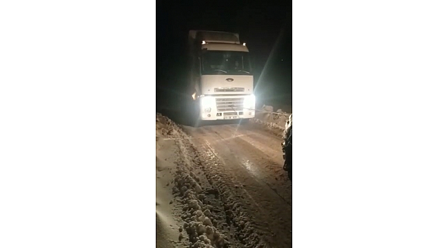 Elazığ'da kar ve buzlanmadan dolayı yolanda çıkan tır, İl Özel İdaresi ekipleri tarafından kurtarıldı.