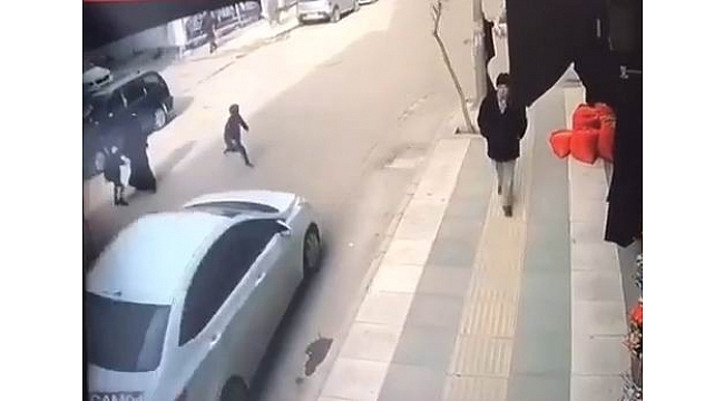 Çocuğun hastanedeki tedavisi sürerken, kaza anı bölgede bulunan bir iş yerinin güvenlik kamerasına saniye saniye yansıdı.